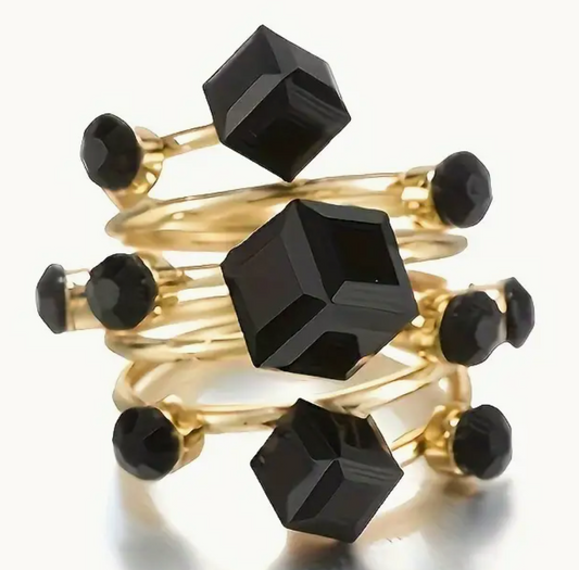 ANILLO PIEDRAS NEGRAS AJUSTABLE