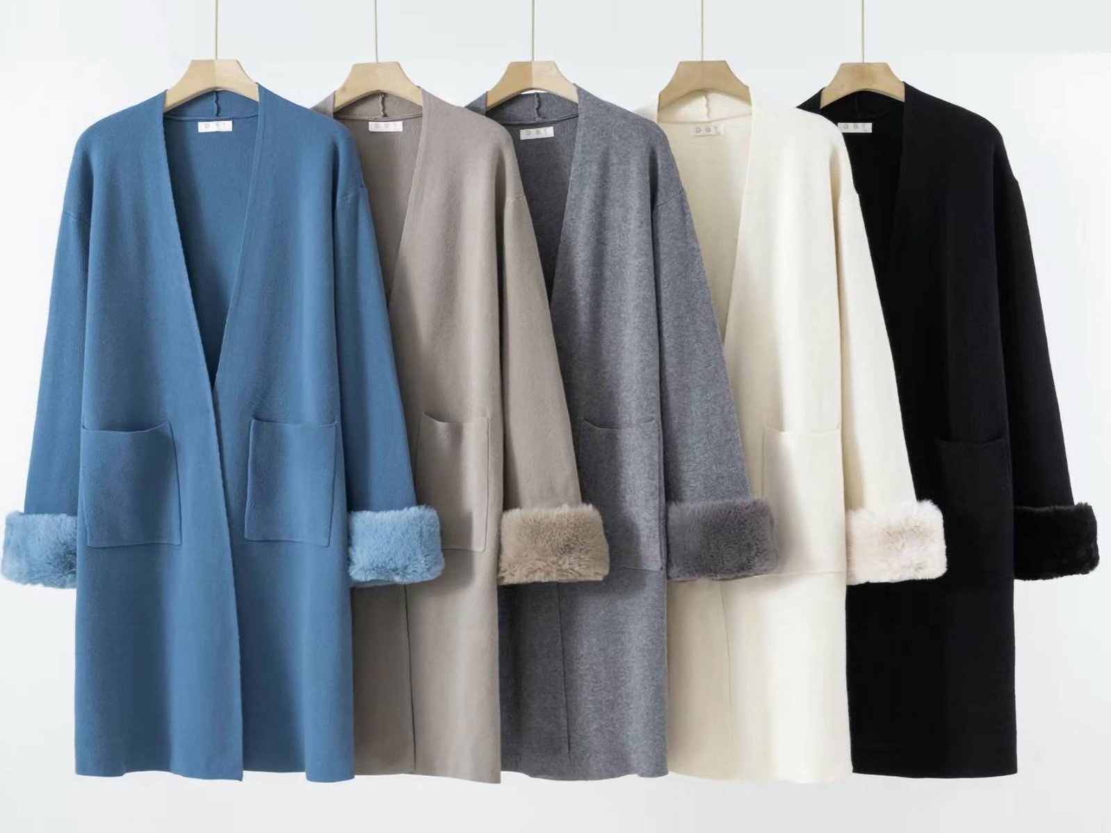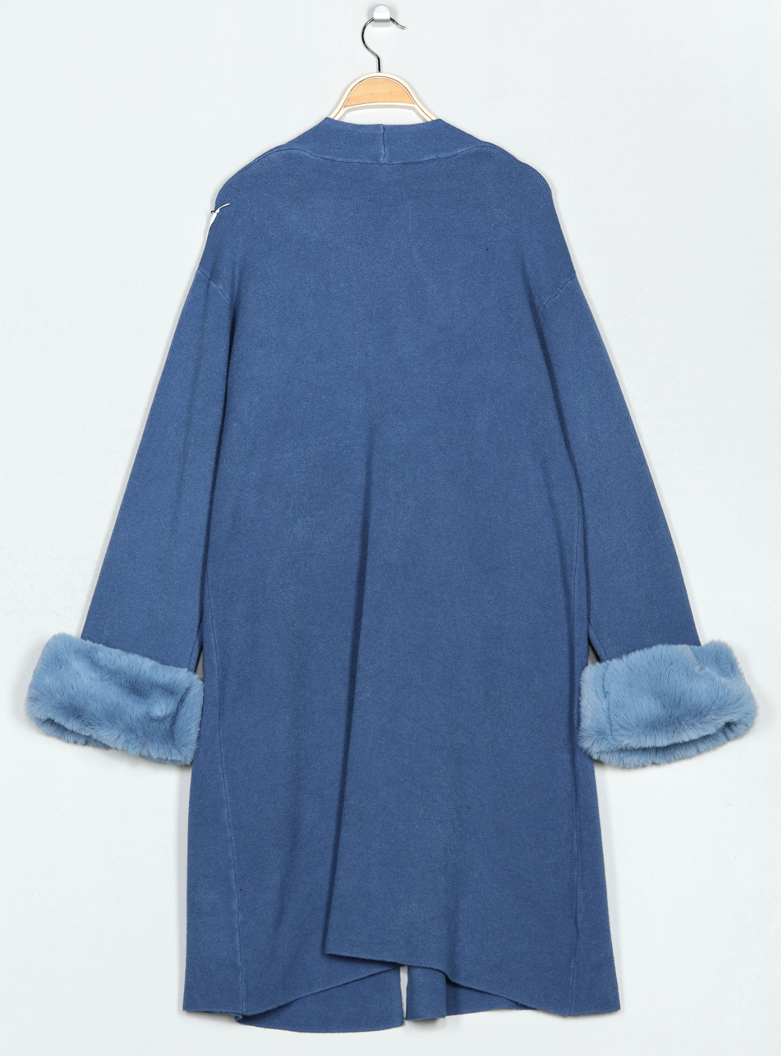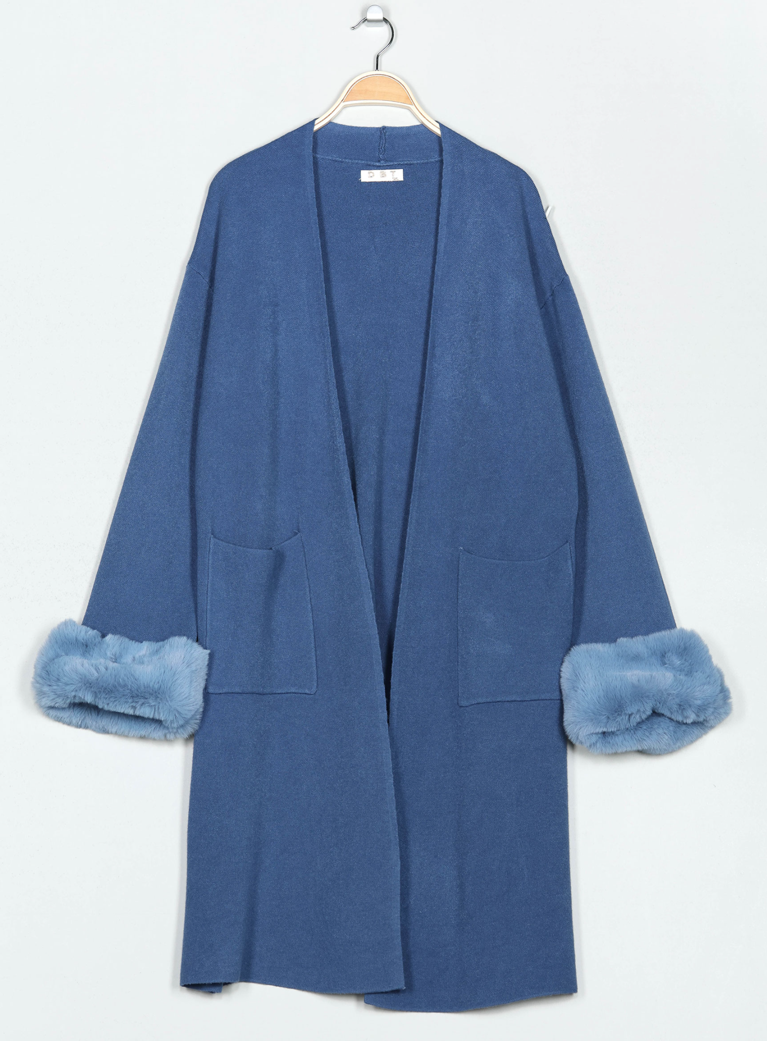 Chaqueta larga de punto cálido. Tacto suave. Bolsillos delanteros de plastrón. Manga larga con detalle pelo.