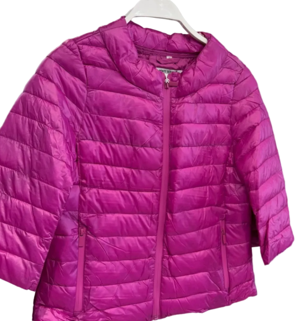Chaqueta acolchada confeccionada en tejido técnico ligero. Diseño con cuello redondo, manga francesa y cierre frontal con cremallera oculta. Cuenta con bolsillos laterales y acabado acolchado que aporta comodidad y estilo.