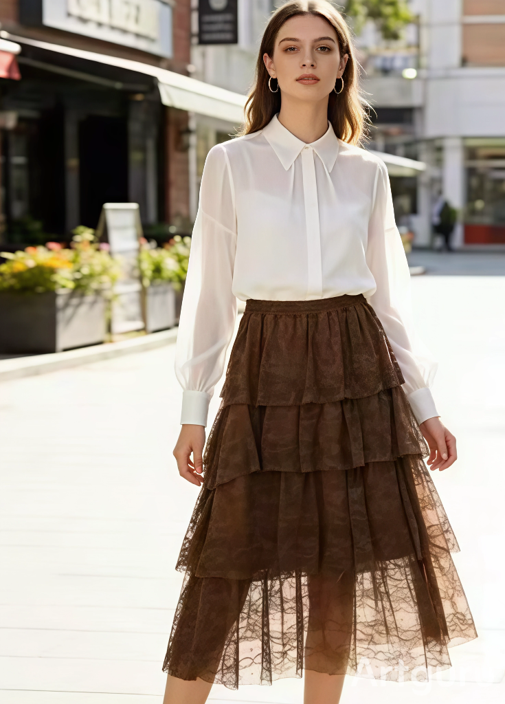 Falda midi confeccionada en tejido de tul con diseño de capas y volantes que aportan movimiento y un estilo elegante. Cintura elástica para mayor comodidad y ajuste. Su diseño ligero y femenino la convierte en una prenda perfecta para crear looks sofisticados tanto de día como de noche.