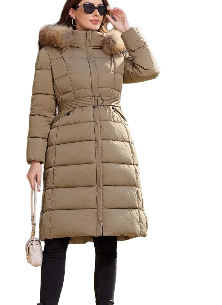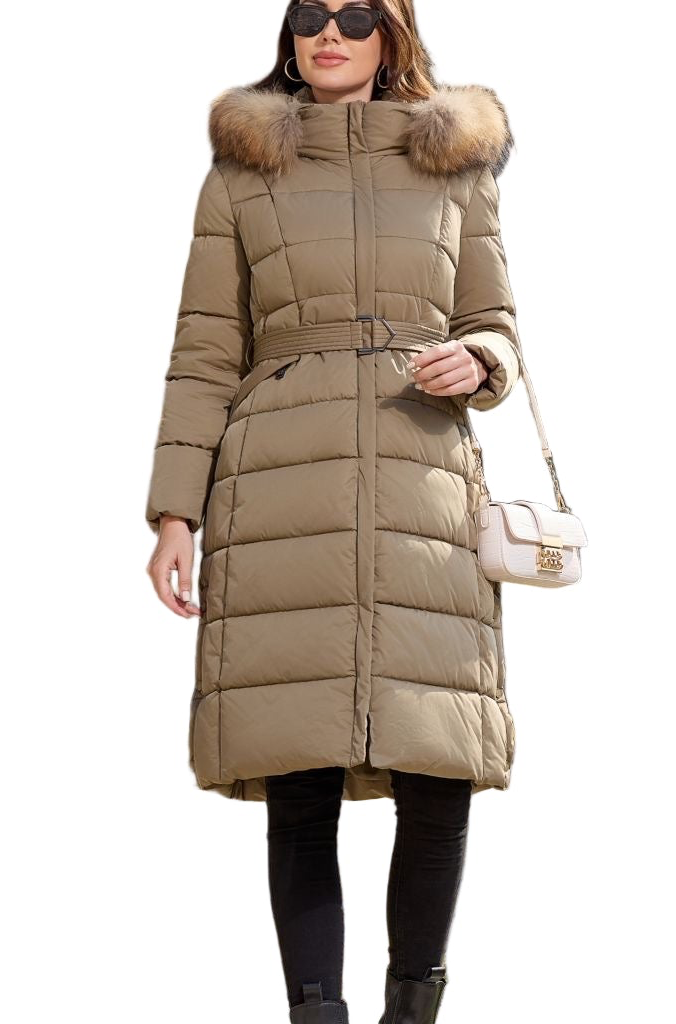 Plumífero para temperaturas bajas con capucha de pelo natural