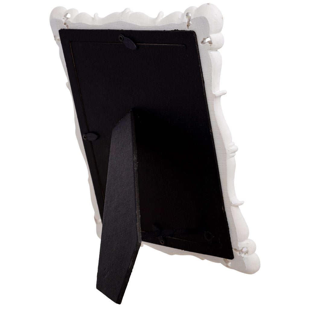 Este porta fotos blanco artesanal destaca por su marco fino y su acabado natural. Mide 18,7 cm de ancho, 1,7 cm de fondo y 23,7 cm de alto, perfecto para fotos de 13x18 cm. Su diseño minimalista combina fácilmente con cualquier estilo decorativo.