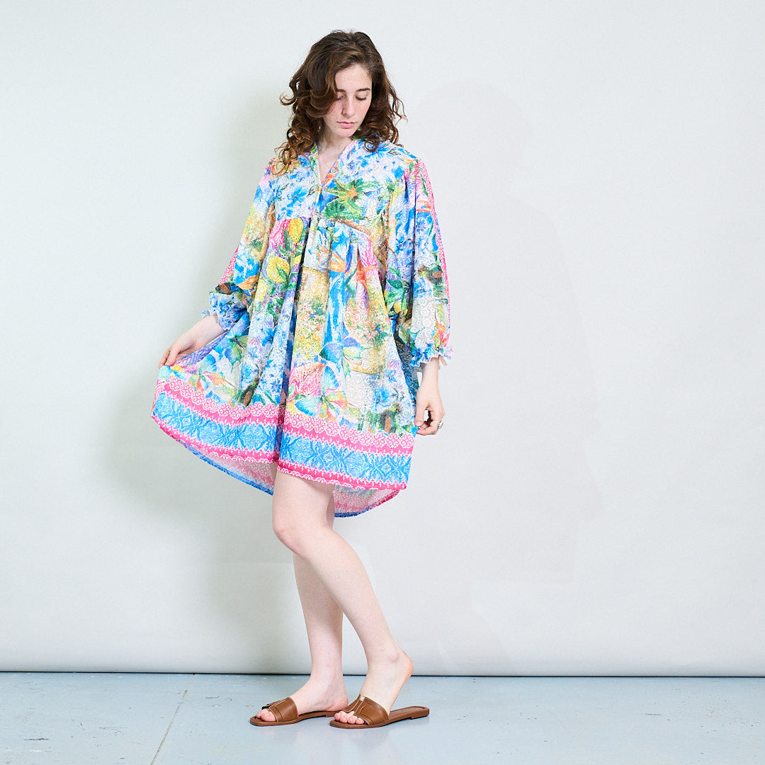 Silueta escalonada con fruncidos suaves para dar volumen.