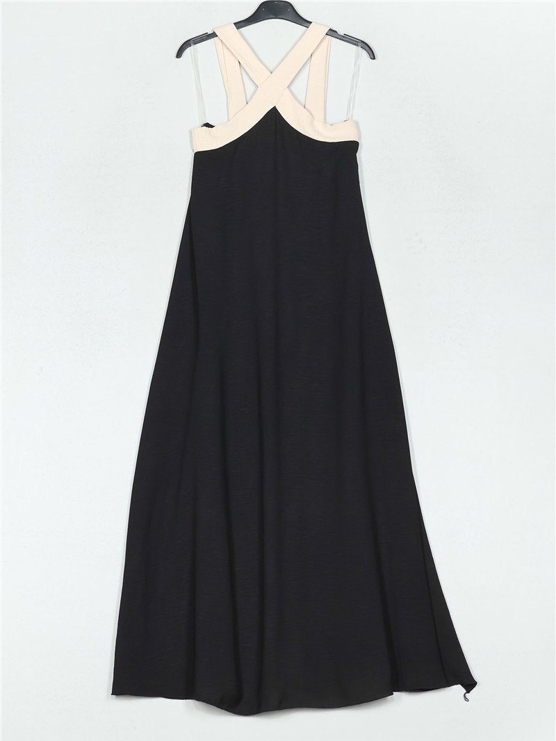 Vestido largo contraste. Tirantes cruzados. Detalle elástico en espalda.